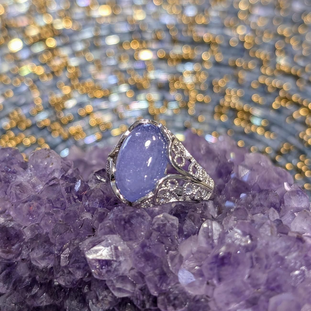 Magnifique bague ajustable en argent 925 rhodié avec Tanzanite. Taille de la pierre: 13x8mm.