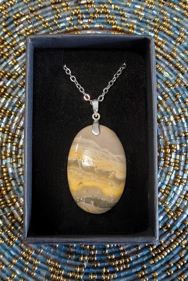 Magnifique pendentif Jaspe Bumblebee dans son écrin noir.