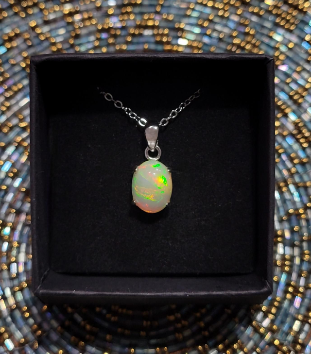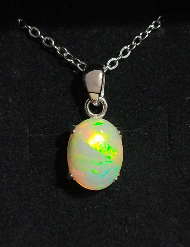 Magnifique et unique opale Éthiopienne sur pendentif en argent 925 rhodié.