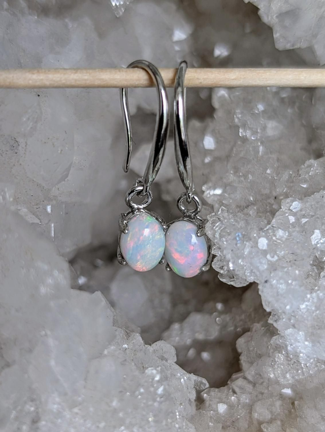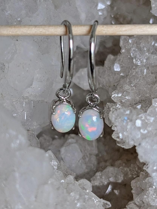 Magnifique et unique paire de boucles d’oreilles en opale éthiopienne, montée sur argent rhodié 925.
