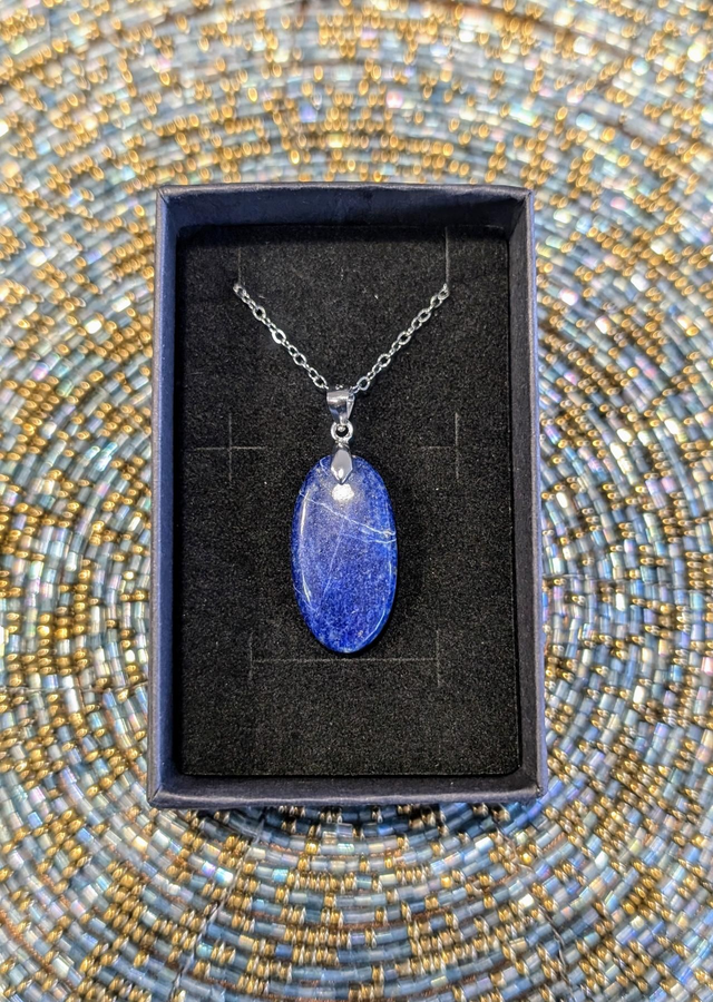 Superbe pendentif en lapis lazuli dans son écrin noir.